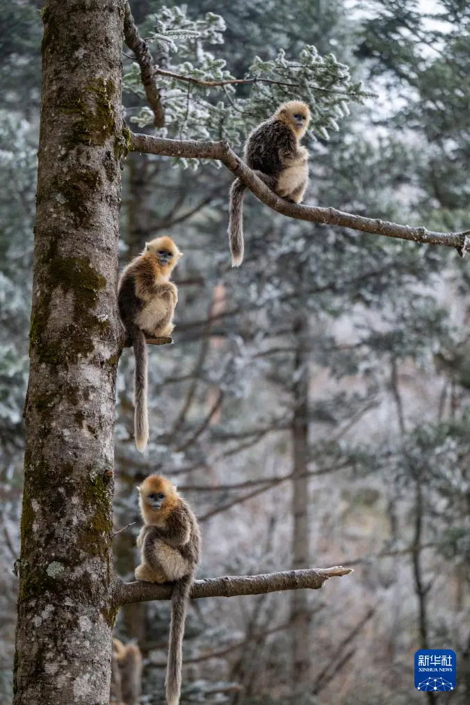 近日,湖北省神农架林区迎来降雪,金丝猴群在雪地里玩耍、觅食、休憩。神农架林区近期对金丝猴的调查结果显示,神农架林区现分布有金丝猴种群11个,数量1618只,栖息地面积401平方公里。