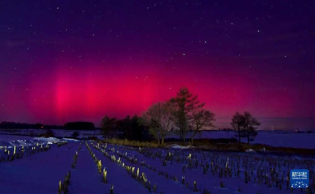 1月20日在位于黑龙江省黑河市的北大荒集团北安分公司二龙山农场有限公司拍摄的绚丽极光。