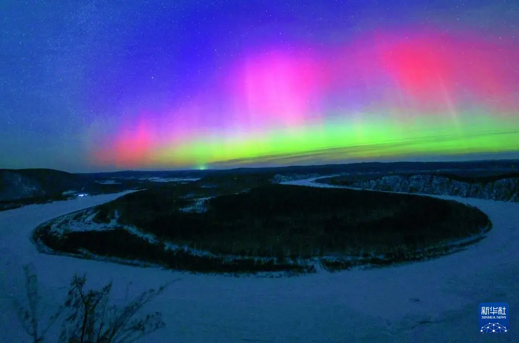 1月20日,中国最北省份黑龙江省多地观测到绚丽极光。