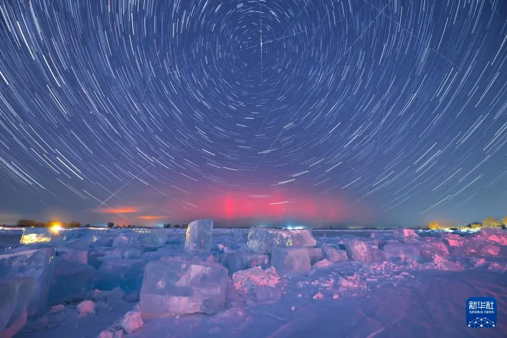 1月20日在黑龙江省齐齐哈尔市拍摄的绚丽极光(堆栈合成照片)。