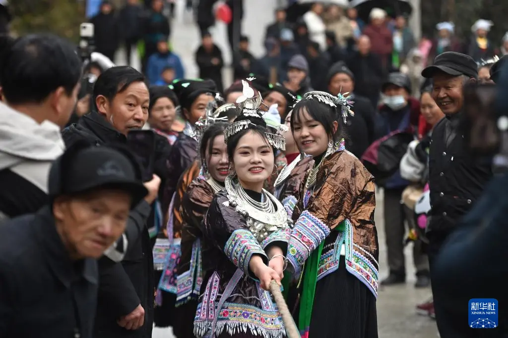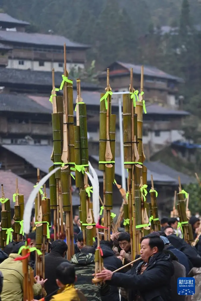 1月20日是大寒节气,广西柳州市融水苗族自治县杆洞乡党鸠村举办传统苗年庆祝活动,当地群众和游客在寒风细雨中吹芦笙、唱苗歌、跳苗舞、品百家宴,共度佳节。