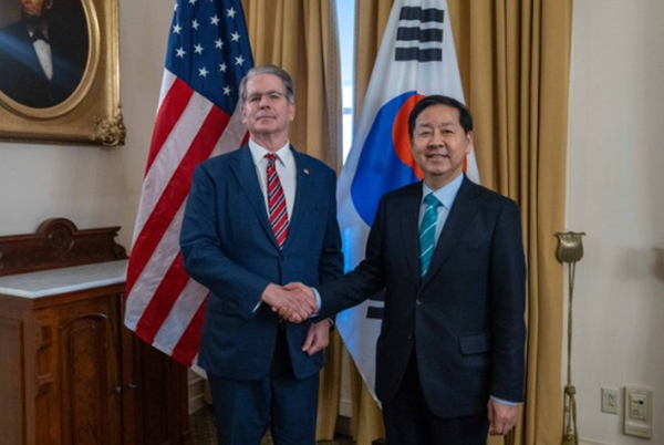 当地时间1月12日,美国财政部长贝森特与韩国经济副总理兼企划财政部长官具润哲举行会面。 社交媒体