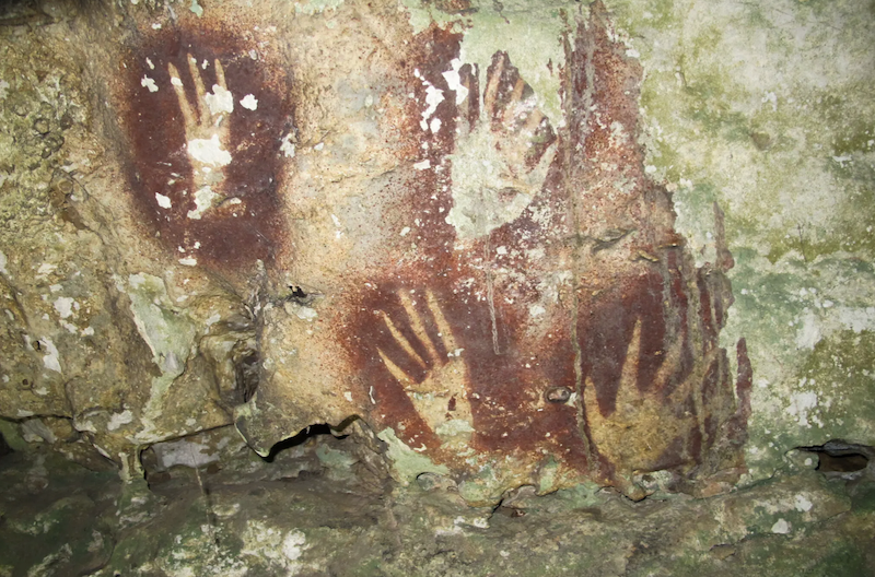 印度尼西亚苏拉威西岛上的史前洞穴岩画,它们的年代比手印要晚得多