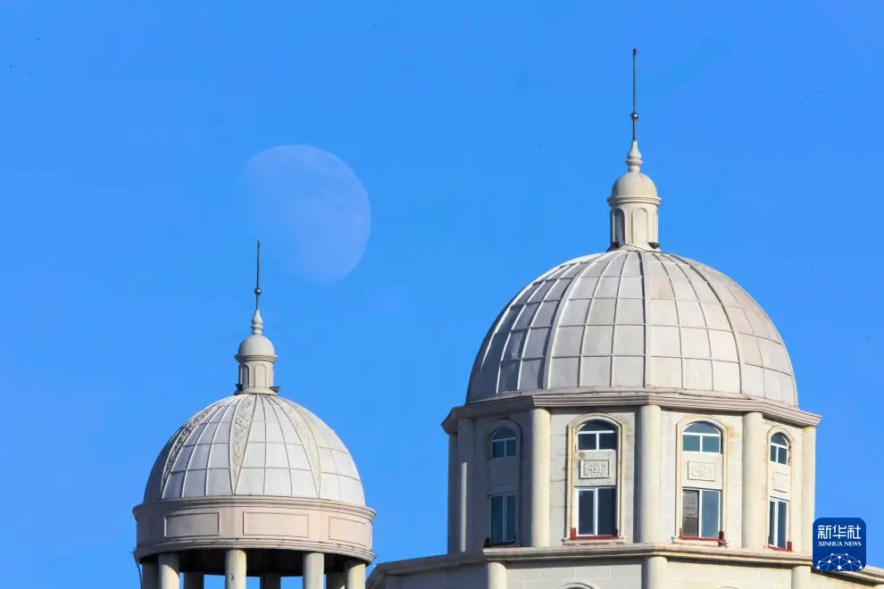 1月29日在黑龙江省大庆市拍摄的月亮。