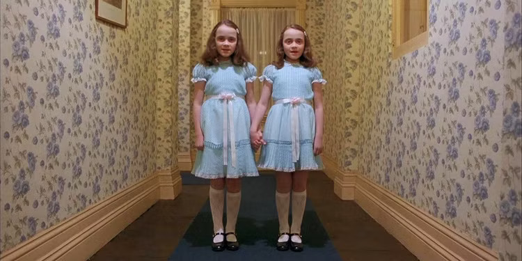 电影之外,《闪灵》对于其他流行文化的影响也是无远弗届。片中,杰克·尼科尔森劈开门后即兴说出的那句“Here's Johnny!”,已成为美国人表达不速之客突然到来的代名词。打字机上反复出现的那句“All work and no play makes Jack a dull boy”,也成了现代人被工作压垮导致精神崩溃的经典表达。而那对手拉手、穿着蓝色连衣裙的双胞胎女孩则是万圣节最经常被cos的人物之一。