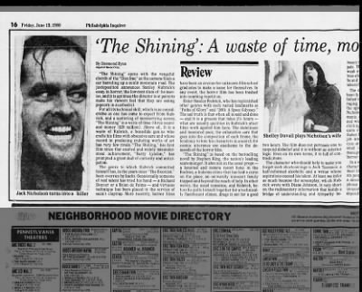 当年报纸上刊登的《闪灵》负面影评