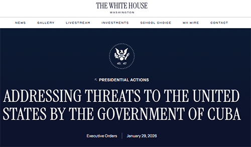 当地时间1月29日,美国总统特朗普签署行政令,宣布国家紧急状态,威胁对向古巴提供石油的国家输美商品加征从价关税。目前,古巴及墨西哥方面尚未对此做出正式回应。
