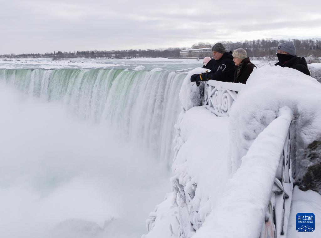 1月30日,游客在加拿大安大略省欣赏尼亚加拉瀑布冬日景色。