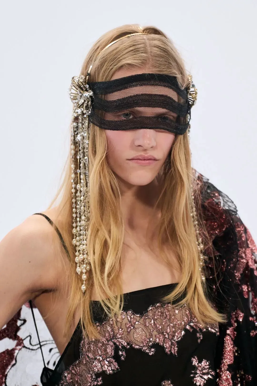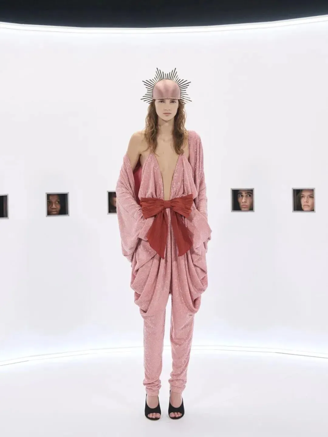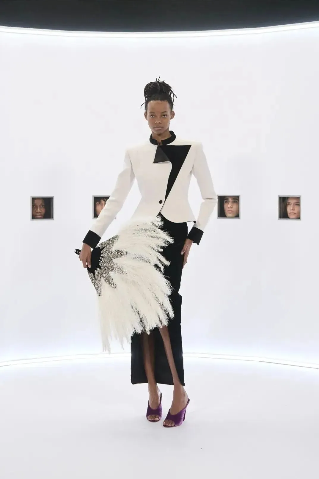 羽毛、夸张的饰领、艺术化的轮廓线条与影像感刺绣,使身体逐渐退后,形象本身走到前景。这是一种明显区别于传统 Valentino 优雅路径的审美转向,更原始、更野性,也更象征性,都让人联想到1930年代好莱坞黄金年代影片中那些荧幕形象。