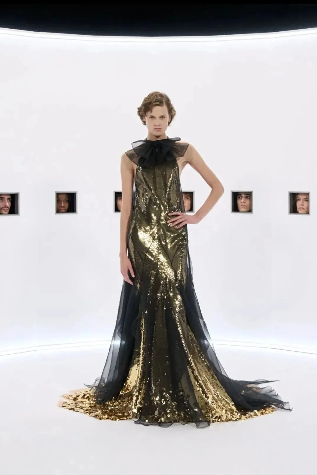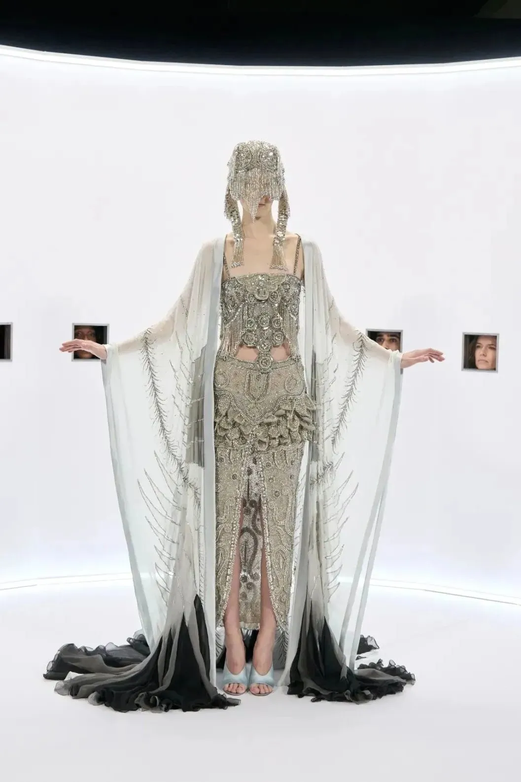 在这个被精心设计的观看机制中,高级定制的意义被重新校准:服装是神圣显现的主体;观者被转化为凝视者;秀场成为时间、影像与记忆的交汇点。