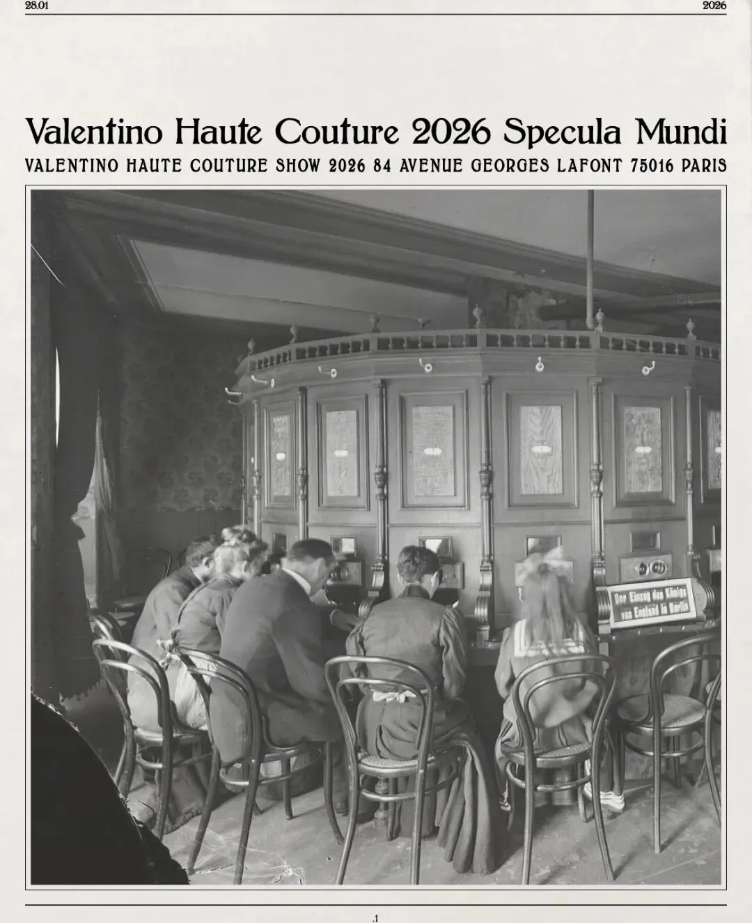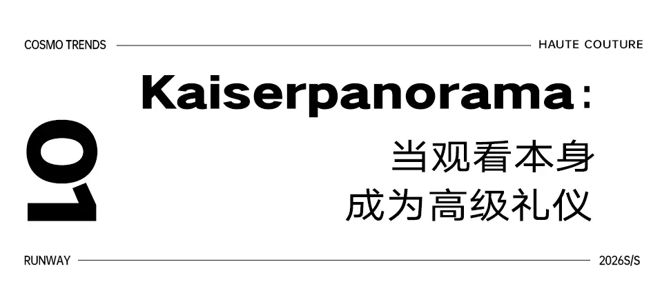 Alessandro Michele 为 Valentino 2026春夏高级定制所构建的,并非传统意义上的秀场空间,而是一座关于凝视的装置——灵感来源于19世纪立体观看装置Kaiserpanorama(凯撒全景)。这样一座缓慢旋转的视觉神龛,在秀场中被搭起。