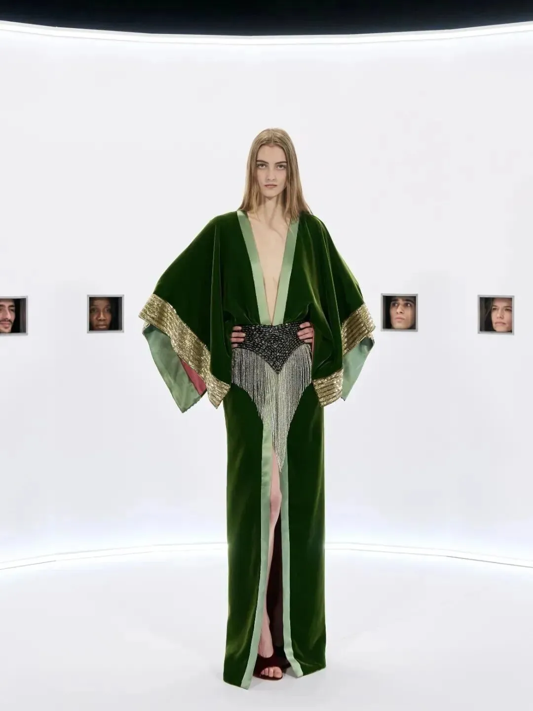 当观看的秩序被确立,秀场进入对身体的书写。在剪裁与结构上,20世纪早期的服装语汇被反复引用,与波西米亚式的戏剧张力并置,形成一种古典与当代并存的视觉状态。