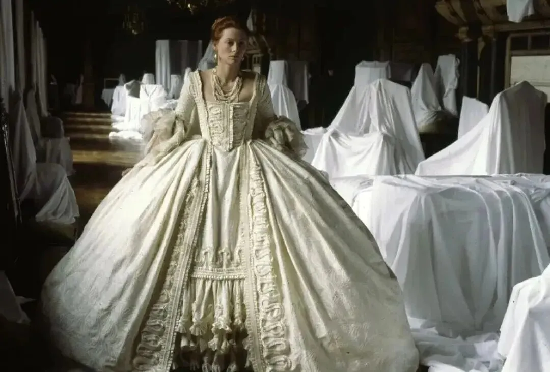 其中的一些造型似乎致敬了1992年的电影《奥兰多》,格局感十足的连衣裙辅以精致而繁复的刺绣、长手套与披挂式细节,配有伊丽莎白时期经典的拉夫领,把历史权力与舞台感并置。