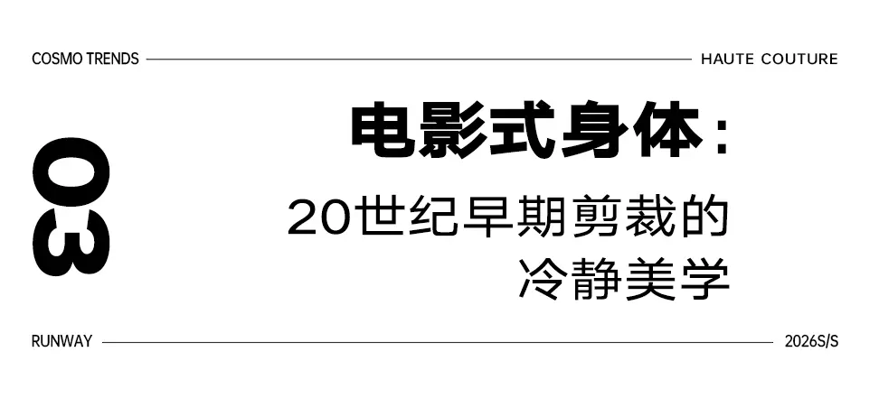 这些造型拒绝夸张动态,模特的行走被弱化,取而代之的是姿态的持续。服装如同长镜头,将身体置于持续的凝视之中,因此服装不再属于某个瞬间,制造出一种冷静而不可打断的存在感,而像被定格在历史与影像之间。