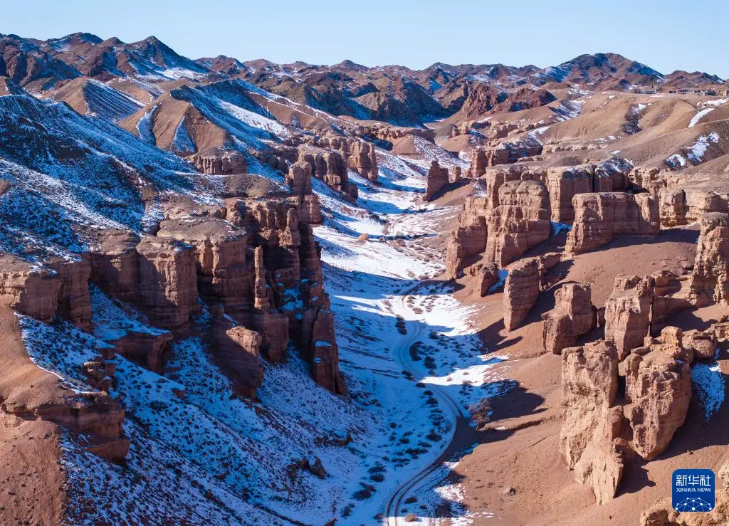 这是1月30日在哈萨克斯坦阿拉木图州拍摄的恰伦峡谷风光(无人机照片)。