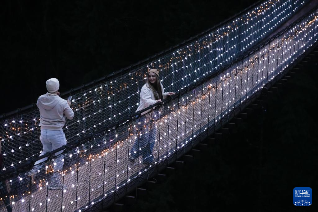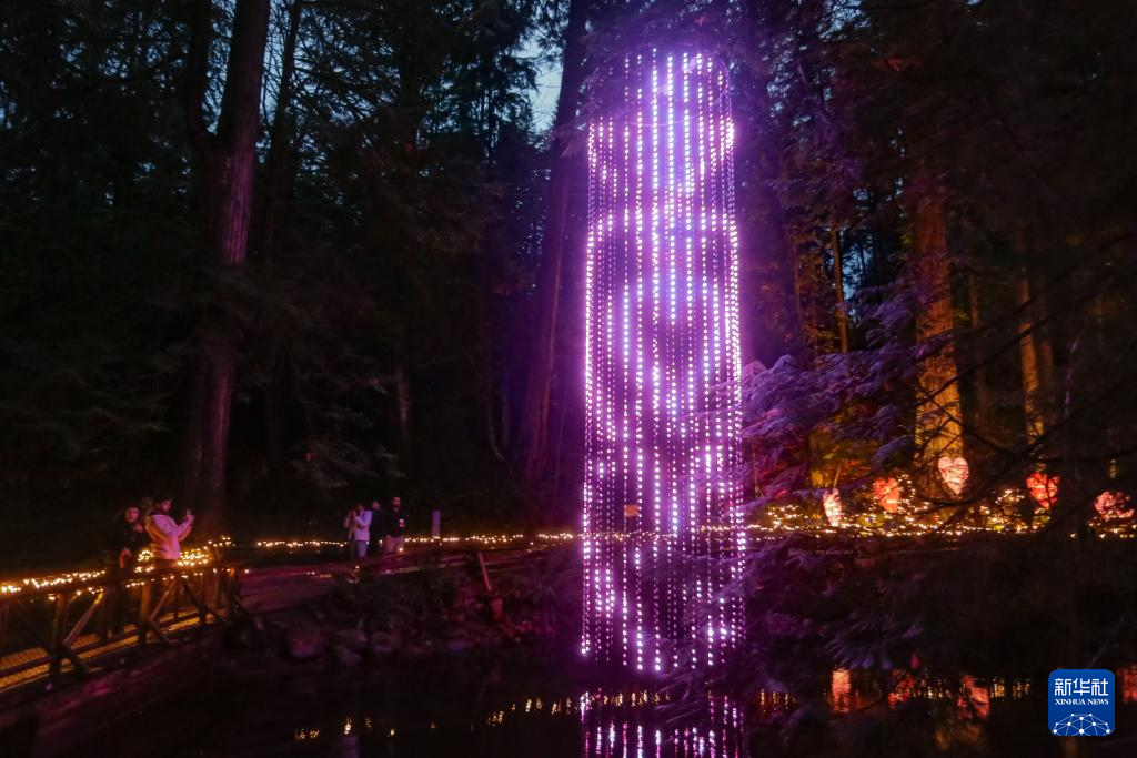 加拿大北温哥华的卡皮拉诺吊桥公园近日举行情人节主题灯光活动,为即将到来的节日增添浪漫氛围。