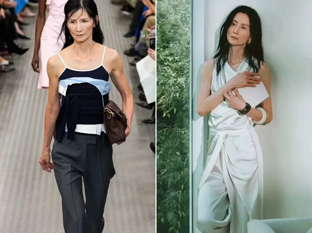 这其中,一位来自中国香港的模特Christina Chung,成功引起了范主的注意。今年60岁的她,穿上一件细节感拉满的优雅小黑裙,以骨相突出的面容,独特的气质,以及从容的台布,一下子颠覆了我对“模特”的定义。