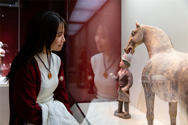 澎湃新闻获悉,在丙午马年新春到来之际,“跃马扬鞭——马年新春文化展”近日在中国国家博物馆向公众展出。本次展览上,珍贵的唐三彩黑釉陶马、秦鞍马俑、西汉彩绘陶兵马俑等展品吸引了现场游客的目光。