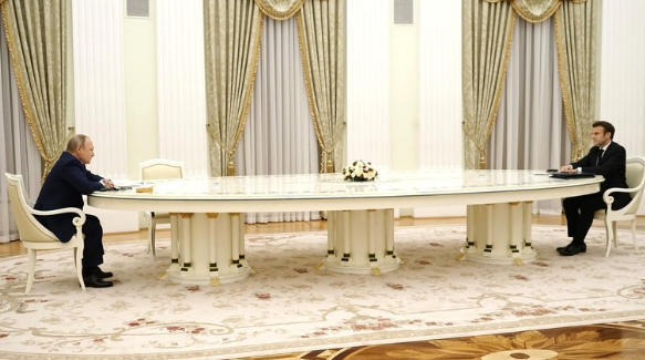 2022年2月,普京在克宫会见马克龙 俄媒