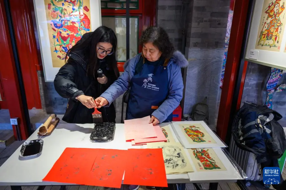 2月4日,观众体验制作年画。