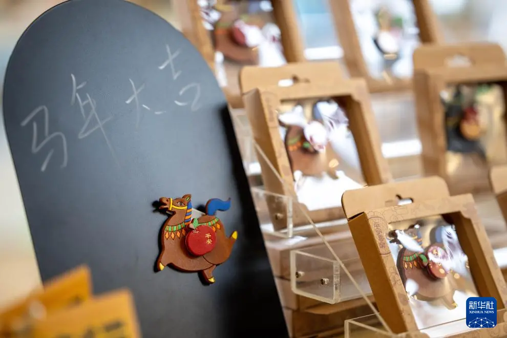 这是在内蒙古博物院的一家文创店内拍摄的马元素冰箱贴(2月7日摄)。