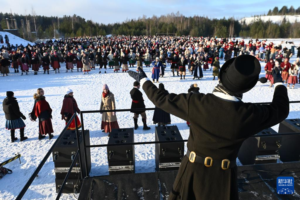 当日,在爱沙尼亚科赫特拉-诺梅由废弃矿山改建的爱沙尼亚矿业博物馆,约1300名不同年龄的舞者在皑皑白雪中参加传统冬季舞蹈节。