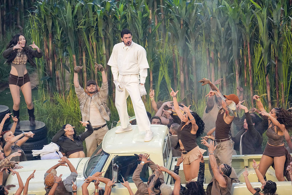 第60届美国职业橄榄球大联盟(NFL)“超级碗”中场秀表演者巴德·邦尼正在演唱歌曲(视觉中国)