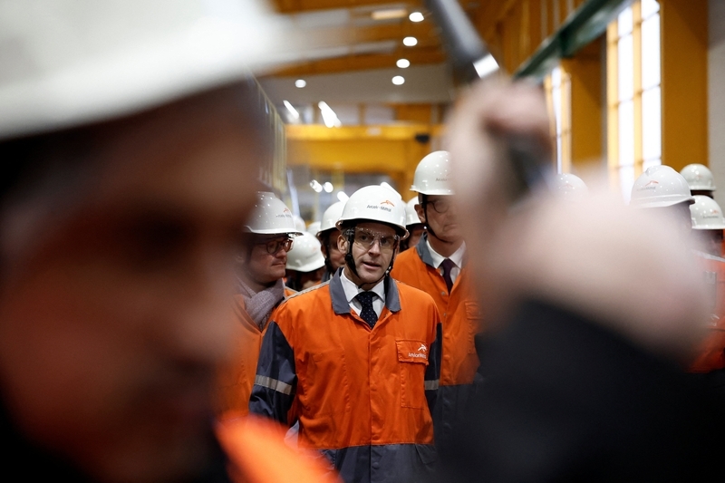 当地时间2026年2月10日,法国北部敦刻尔克,法国总统马克龙视察安赛乐米塔尔钢铁公司旗下Mardyck Electryck电炉炼钢厂。 IC Photo