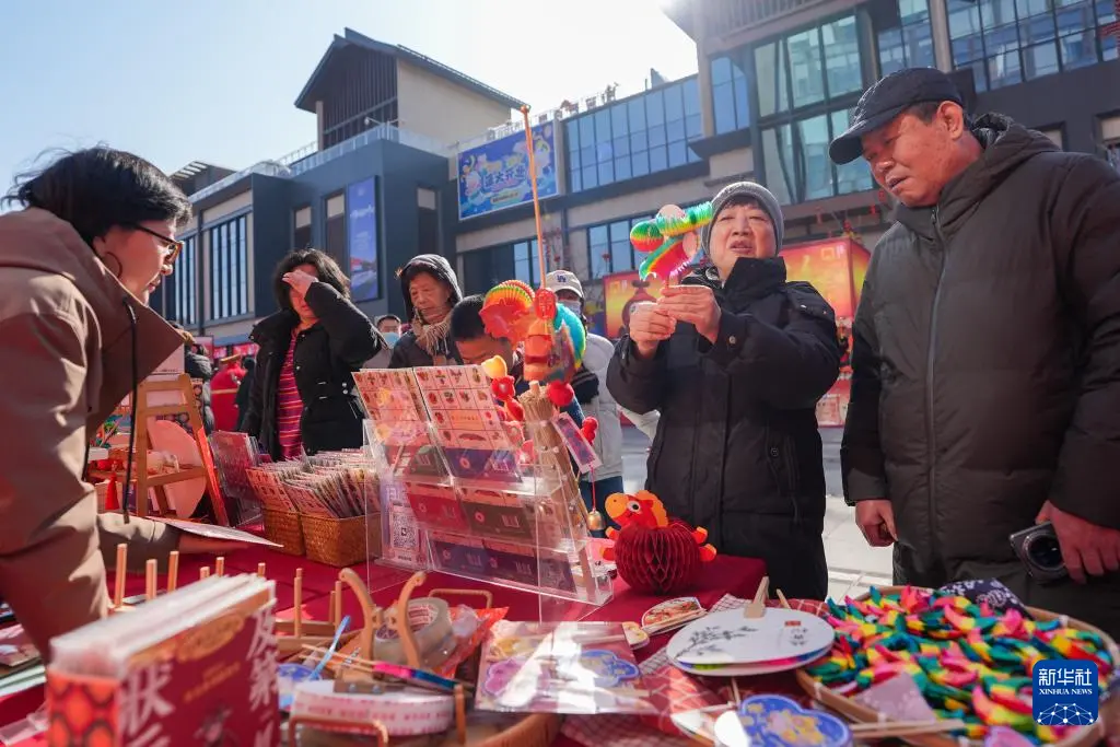 随着春节临近,在北京隆福寺街区,以“马不停蹄,隆福潮集”为主题的2026隆福寺新春市集吸引越来越多的游客前来游览和购物。
