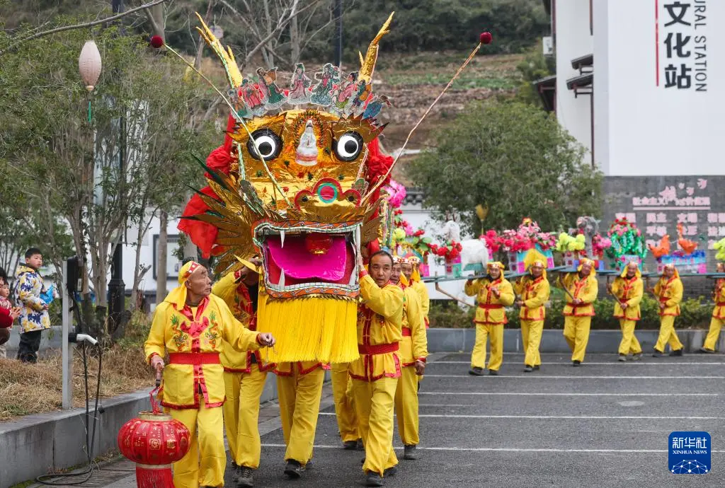 2月10日,诸暨市赵家镇赵家社区村民抬着板凳龙开启巡游。