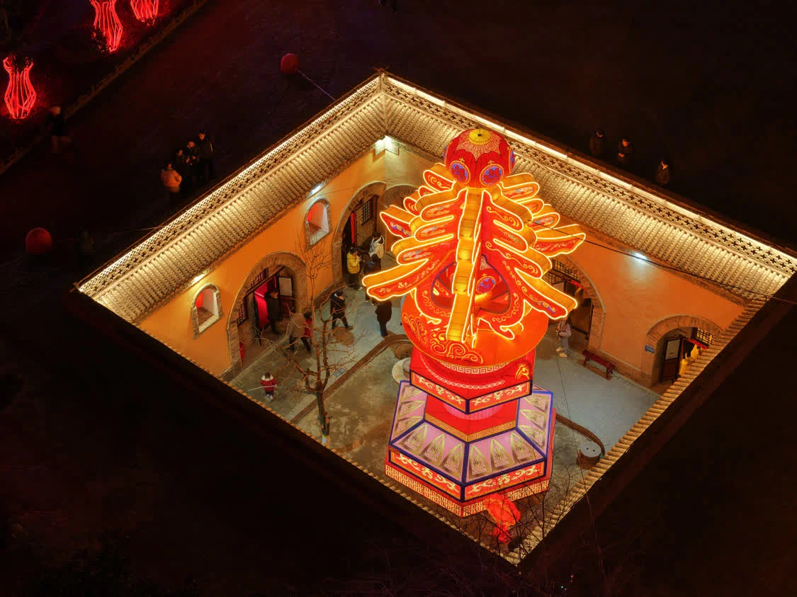 农历春节前夕,第九届陕州灯会在河南省三门峡市陕州地坑院正式亮灯。今年的陕州灯会以“花灯闪耀黄河岸,地坑院里非遗年”为主题,精心打造13组主题灯饰,将传统彩灯工艺与现代光影技术相结合,突出陕州地坑院文化元素,彰显当地民俗文化,为市民与游客带来一场视觉盛宴。