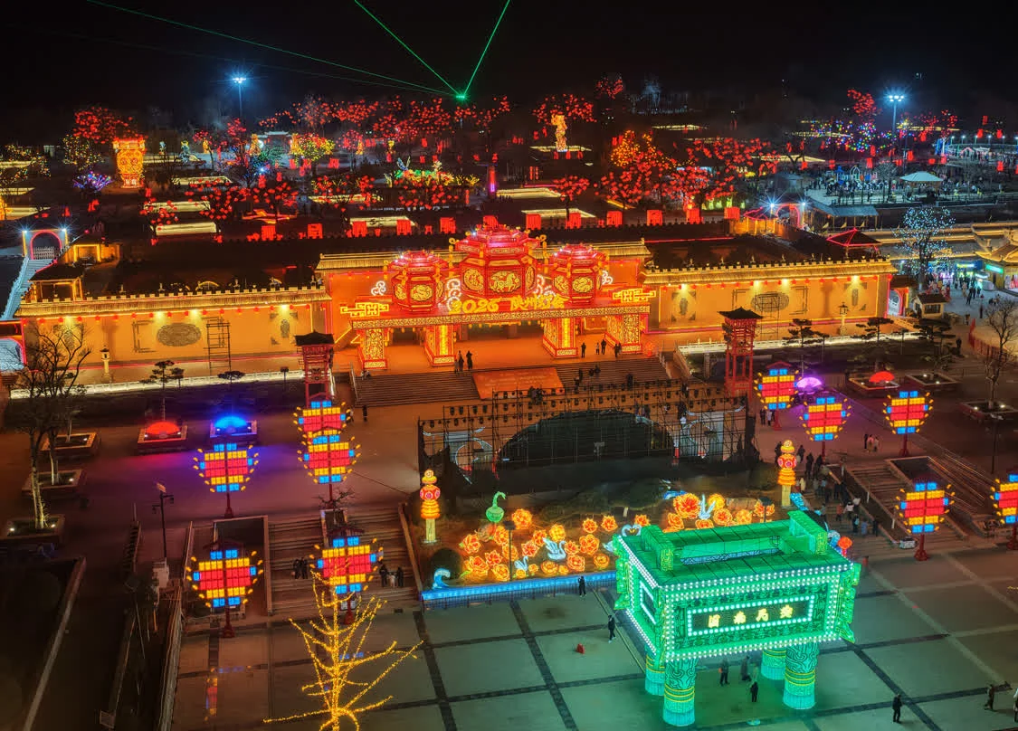2月12日拍摄的第九届陕州灯会现场(无人机照片)。新华社记者 李嘉南 摄