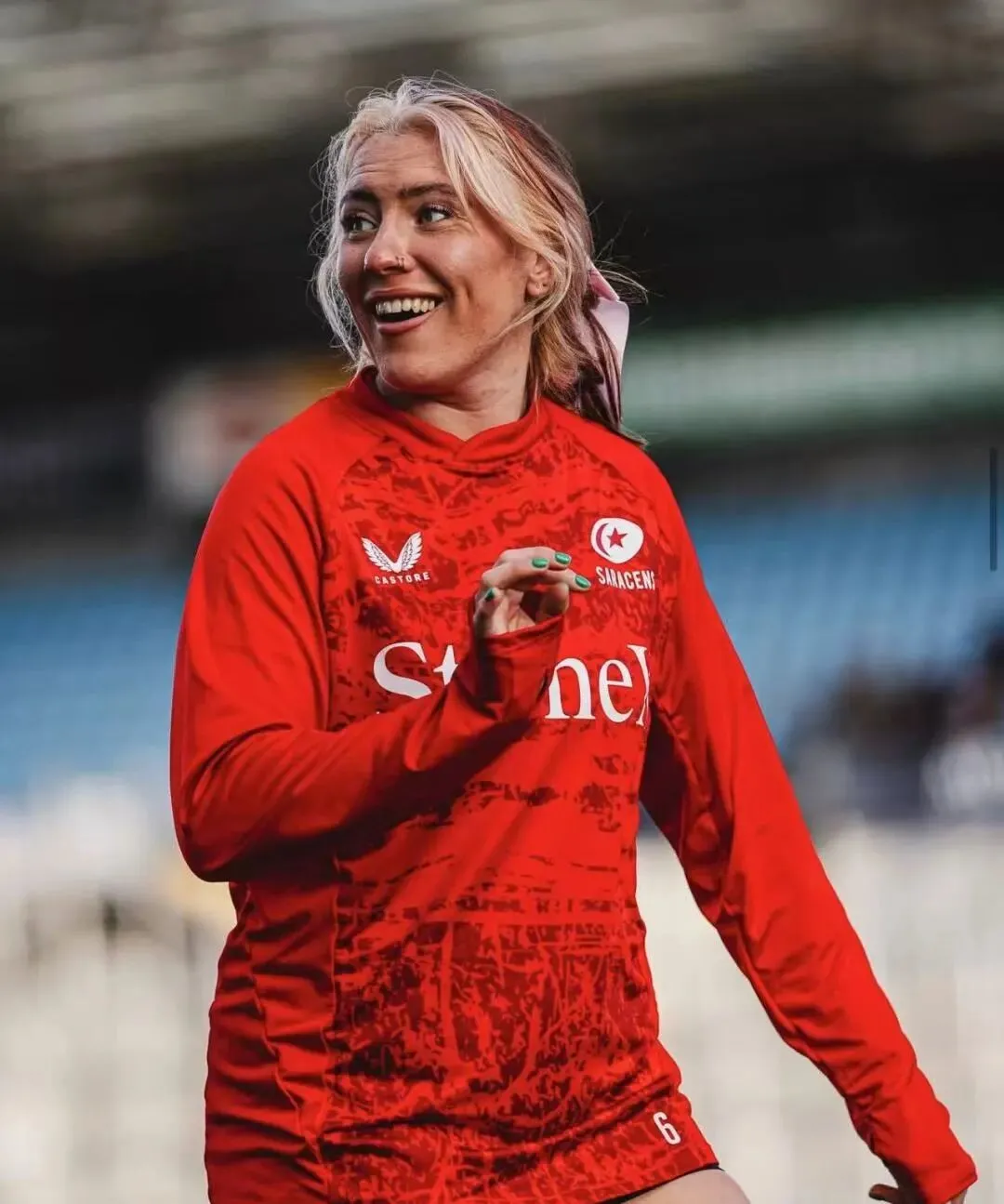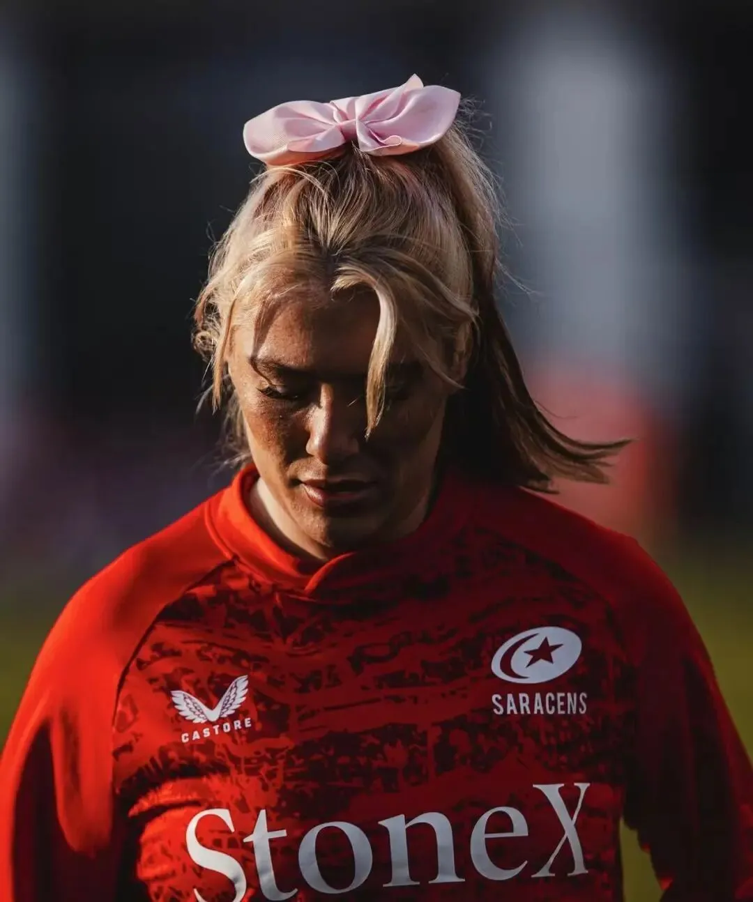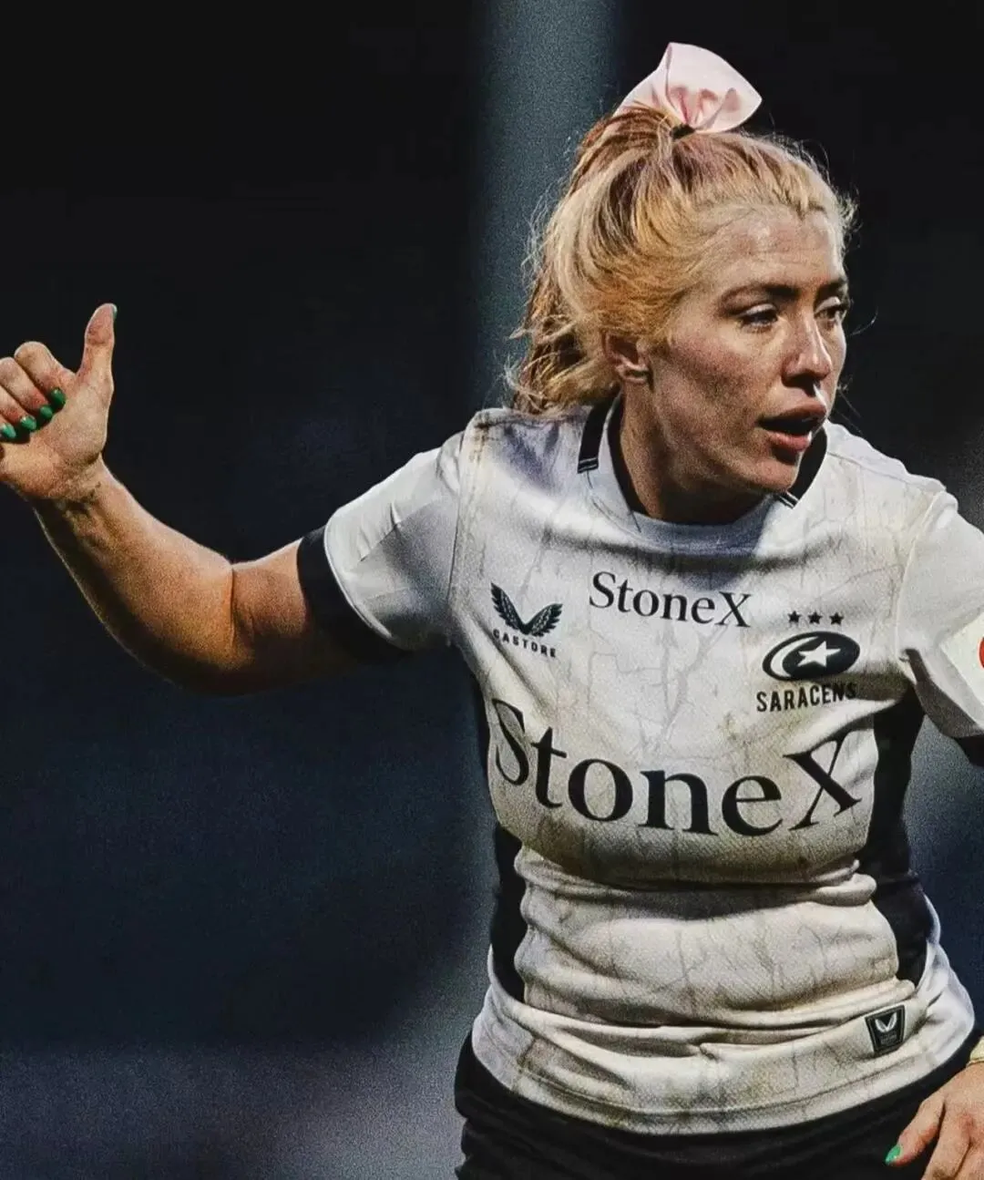 英国女子橄榄球运动员Georgia Evans因为在世界杯赛场上扎着粉色蝴蝶结、化着妆、涂着指甲油,被指责“太女性化,不像运动员”。
