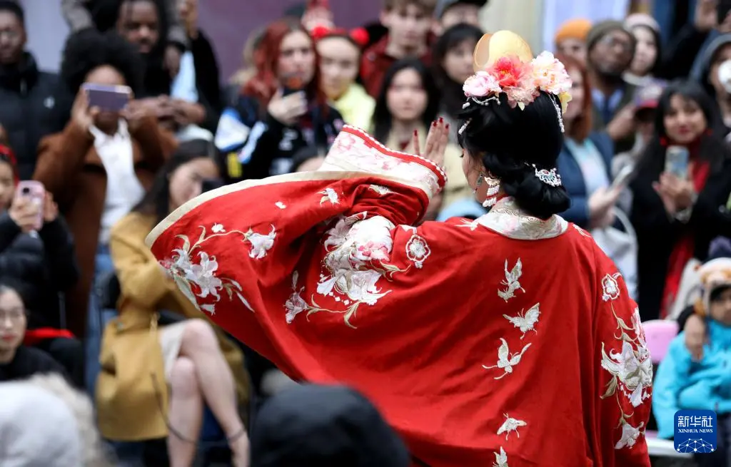 2月21日,人们在英国伦敦卡姆登集市举行的中国春节庆典活动上观看表演。
