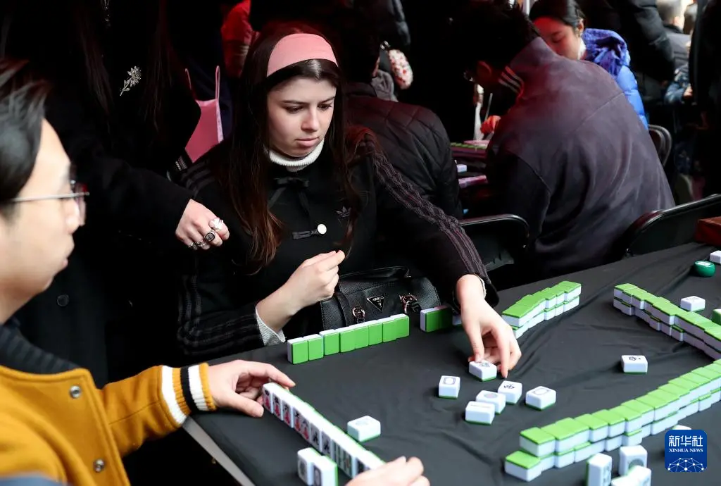 2月21日,人们在英国伦敦卡姆登集市举行的中国春节庆典活动上体验中国麻将。