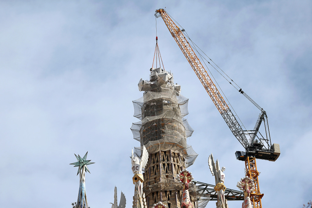 澎湃新闻获悉,当地时间2月20日,西班牙巴塞罗那地标——圣家族大教堂(简称圣家堂)完成中央顶部17米高白色十字架吊装,主体结构正式封顶,以172.5米高度成为全球最高教堂。2026年恰逢这座教堂的设计人、建筑师高迪逝世百年,这座1882年动工的史诗级建筑,跨越了三个世纪终于封顶。