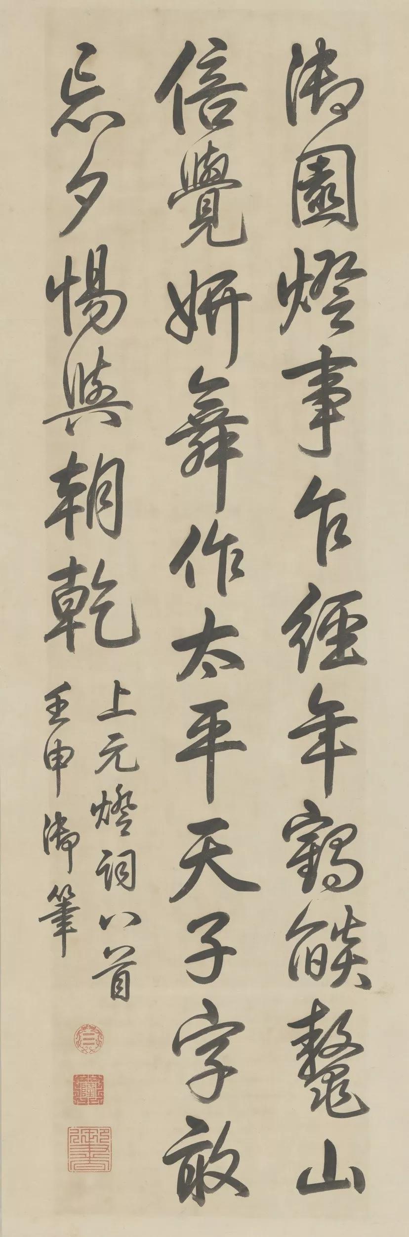 古人也会专门在元宵节当天或前后几天,写下几行字,将时间记得清清楚楚,现今仍能见到很多以“上元”作为时间纪年的书法作品。比如明代书画家董其昌两度在上元日欣然提笔,为王羲之的《兰亭序》和米芾的书法作跋。