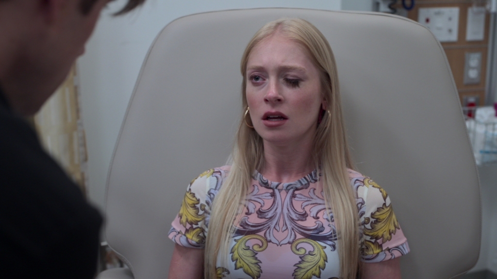 而在前两集中,编剧还插入了一些颇有喜剧色彩的病例,作为严肃题材的调和。比方说:一位金发女士贴假睫毛的时候被超级胶水粘住了眼皮;一个异常勃起的男人入院,医生为了解决这一问题,决定给患者阴茎背神经做利多卡因阻滞。