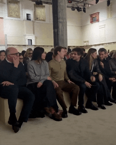 不同于秀场常客贝佐斯,扎克伯格这次看Prada还是他的“时装周首秀”。小扎一身浅棕polo+棕色长裤+厚底乐福鞋,狠狠拿捏“老板风”,把看秀变成“视察分公司”。