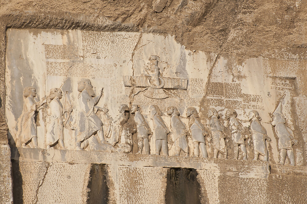 与之相呼应的,是比索通古迹(Bisotun)刻于山崖之上的“比索通铭文”。大流士一世以三种文字铭刻征服与秩序,其史料意义堪比“罗塞塔石碑”。