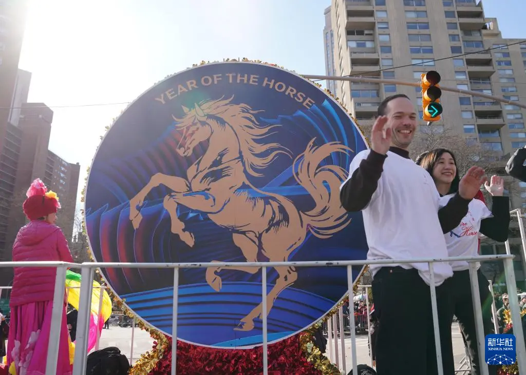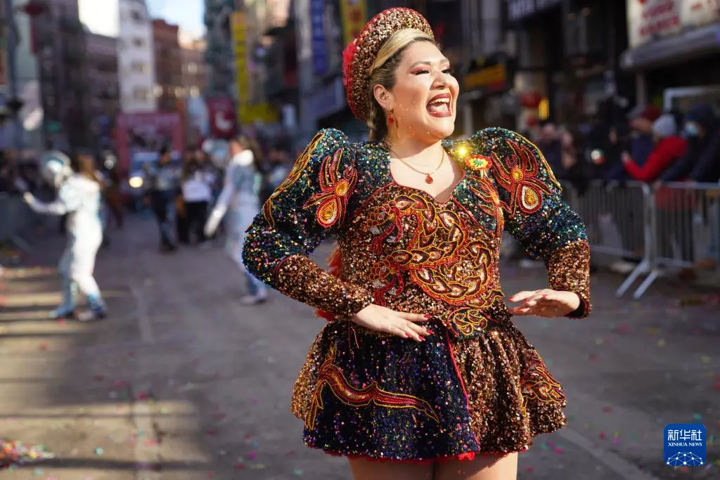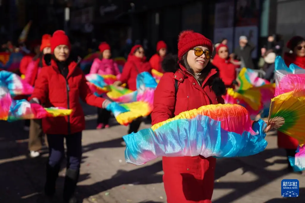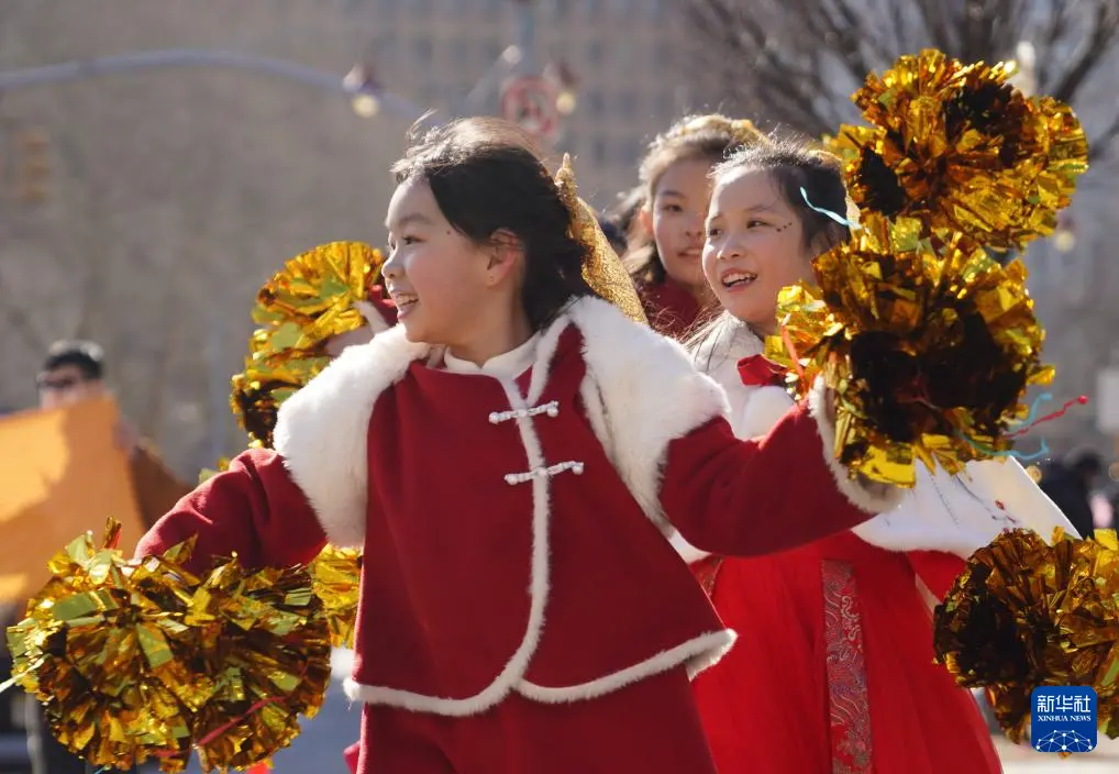 3月1日,在美国纽约中国城,人们参加庆祝农历新年巡游活动。
