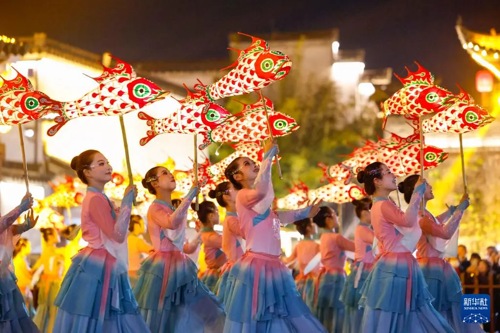 如今,鱼灯已从“乡土技艺”变为“文化IP”。据介绍,歙县现有县级及以上鱼灯非遗传承人38人,当地除了传统的嬉鱼灯表演外,更串联起研学旅行、民宿餐饮、文创开发等业态。这尾从历史深处“游来”的鱼灯,正以传承与创新激活乡村经济,在新时代展现独有的东方浪漫。