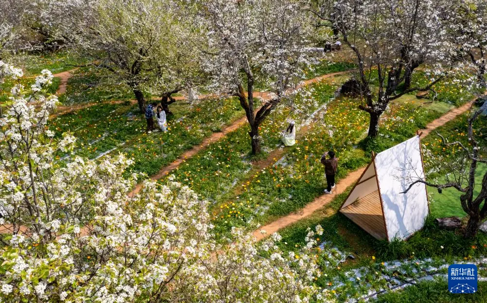 近日,云南昆明春光渐浓,繁花竞放,人们踏青赏花,感受盎然春意。