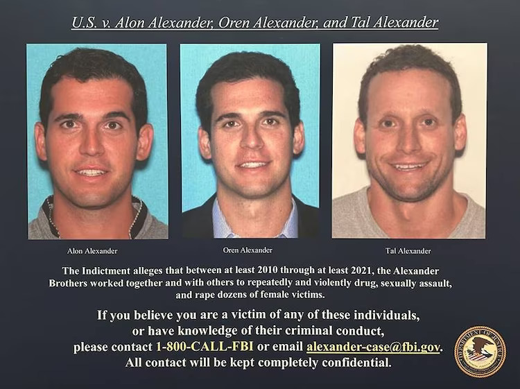 美国《纽约时报》报道,当地时间3月9日,美国纽约曼哈顿法院裁定这三名富豪合谋贩卖妇女与未成年少女从事性交易等10项罪名均成立。三人为亲兄弟,分别名为塔尔·亚历山大(Tal Alexander,39岁)、奥伦·亚历山大(Oren Alexander,38岁)以及阿隆·亚历山大(Alon Alexander,38岁)。