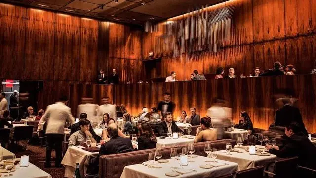 寿宴举办地在纽约曼哈顿中城的The Grill餐厅,以“权力晚餐”著称,装修风格主打奢华,从“女魔头”安娜、黑石CEO到各大政要,都是这的常客。