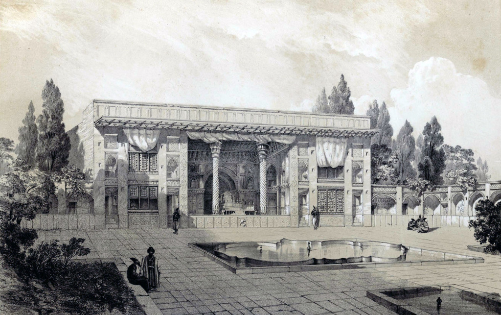 1840年代法国画家欧仁·弗朗丹笔下的大理石王座(Takht-e Marmar)外部景观