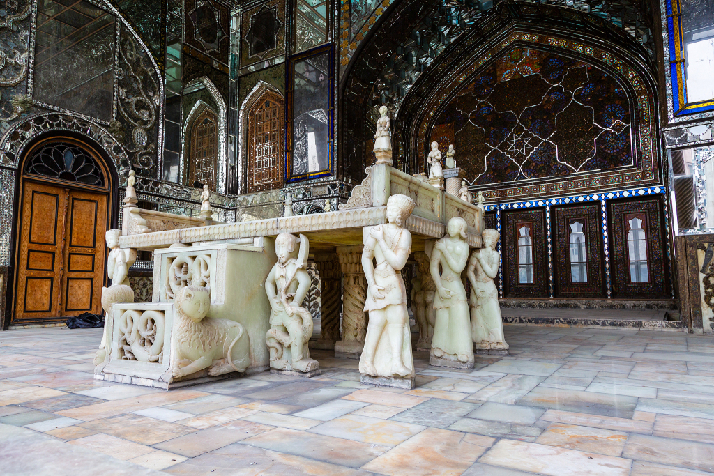 大理石王座(Takht-e Marmar),由65块珍贵的黄色亚兹德大理石拼接雕刻而成。视觉中国 图