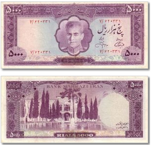 1971年发行的5000里亚尔纸币,背面印有古列斯坦宫景观