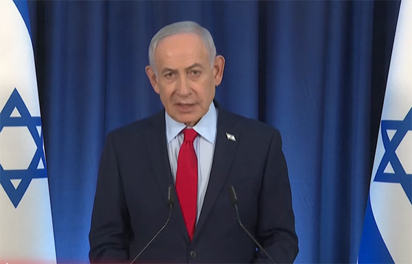 当地时间3月19日晚,内塔尼亚胡举行新闻发布会。 视频截图