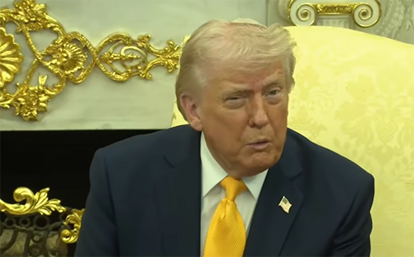当地时间3月19日,特朗普在白宫接受媒体采访。 视频截图